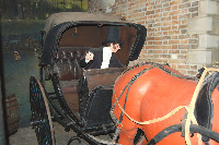 The cabriolet had much in common with the curricle, which it had succeeded as the vehicle to be seen in for the fashionable man about town. A two wheeled, one person vehicle, it was used in England from about 1810, refined and improved from a French design. The racy yet elegant lines of the cabriolet came reasonably priced, and the vertical sitting position for the driver allowed them an unobstructed forward view, whilst the hood gave excellent protection from the elements. It eventually went out of fashion, but was remembered as one of the fastest and stylish vehicles of the era. The example on display at the Streetlife Museum is dated to 1820 and bears the arms of Goldsmid. The maker is named as K. Goodall & Son.